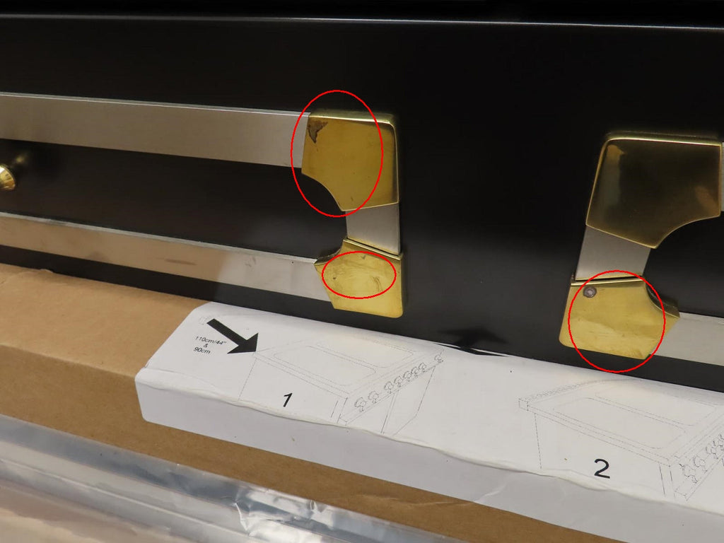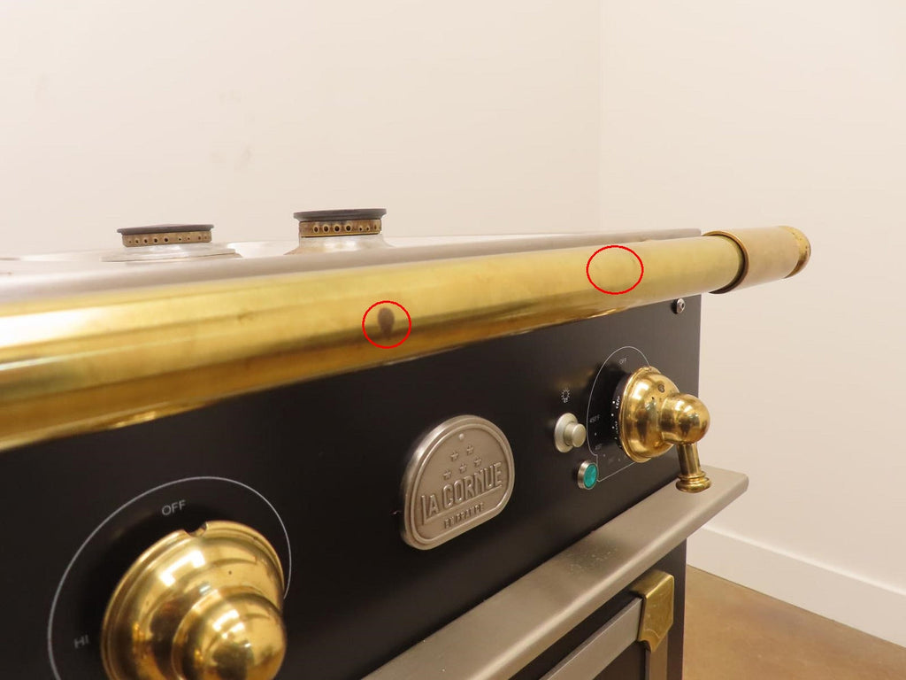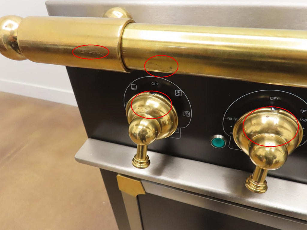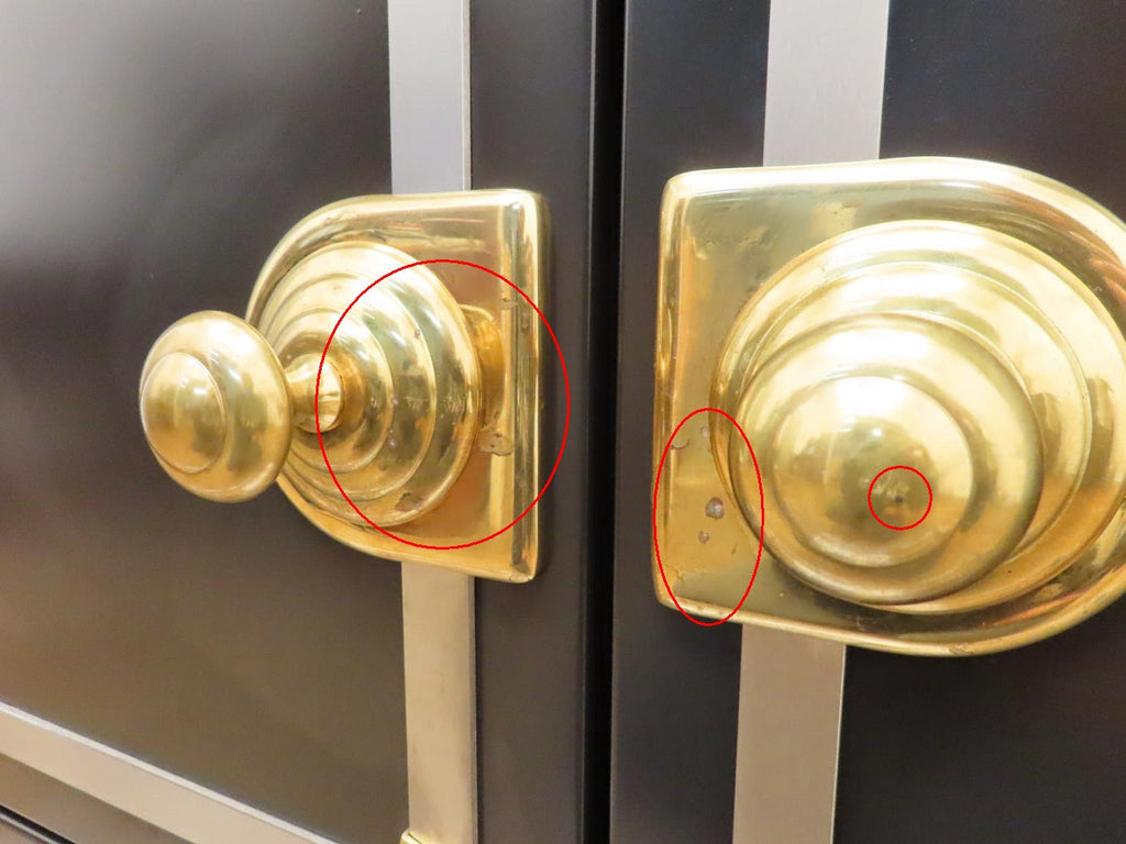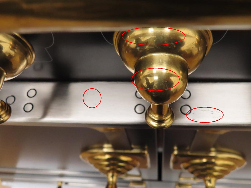 1-SCRATCHES/SCUFFS ON THE BRASS KNOBS/HANDLE BAR.