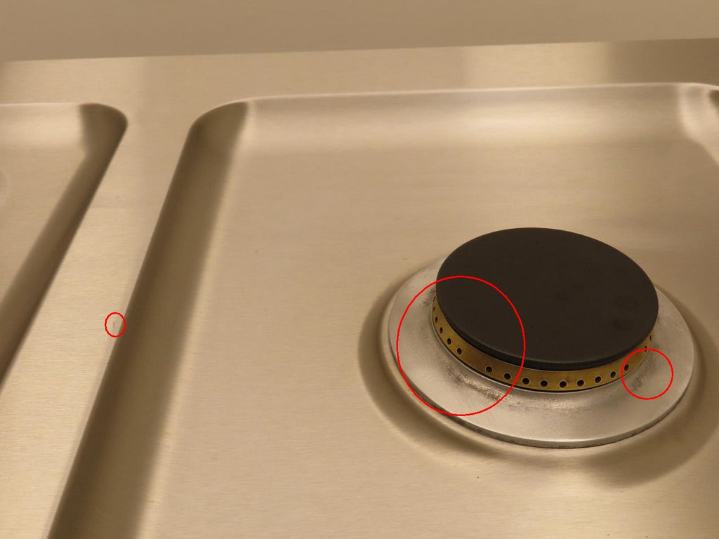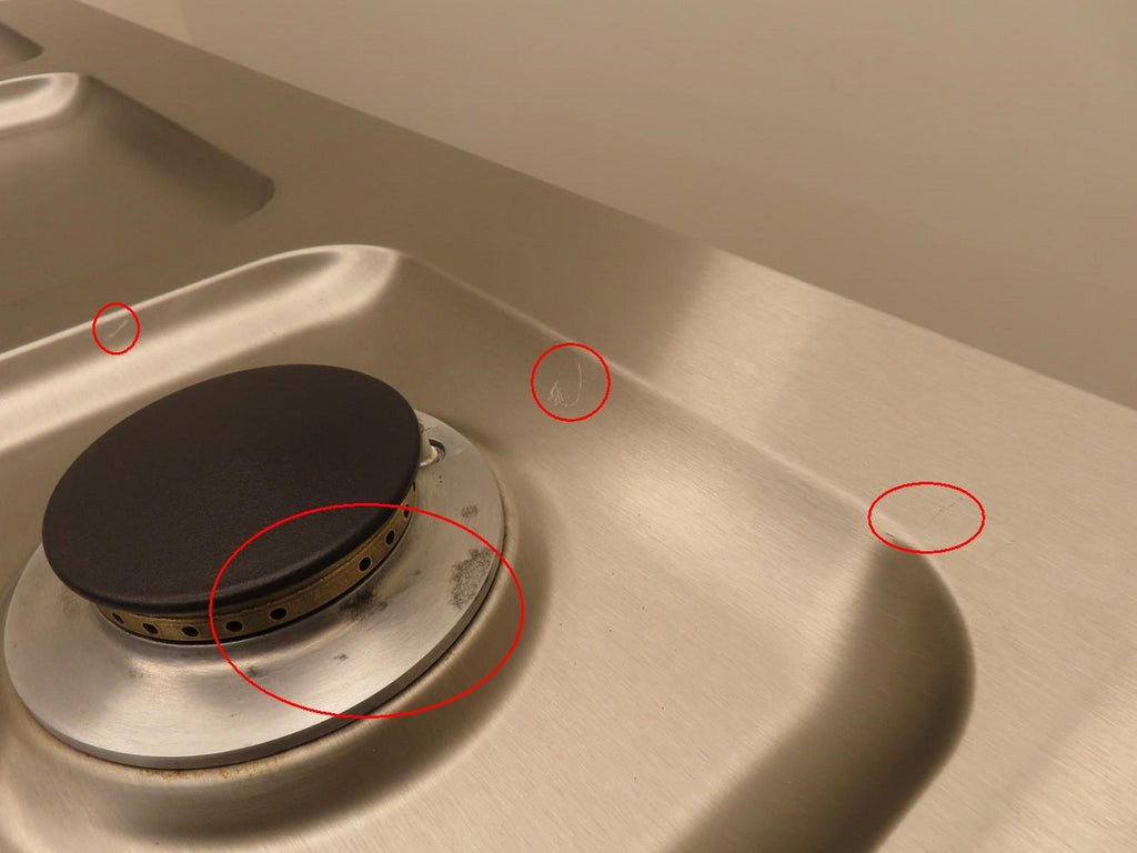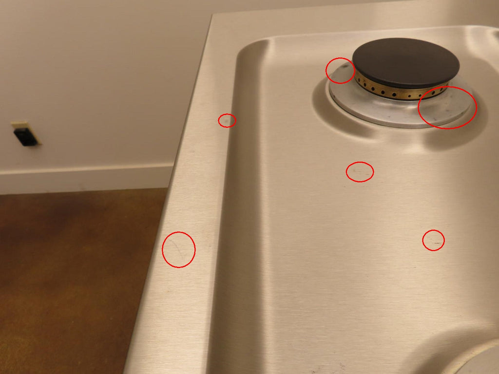 3-SCRATCHES/DISCOLORATION ON THE TOP OF THE UNIT/BURNERS(PIC 12-15).