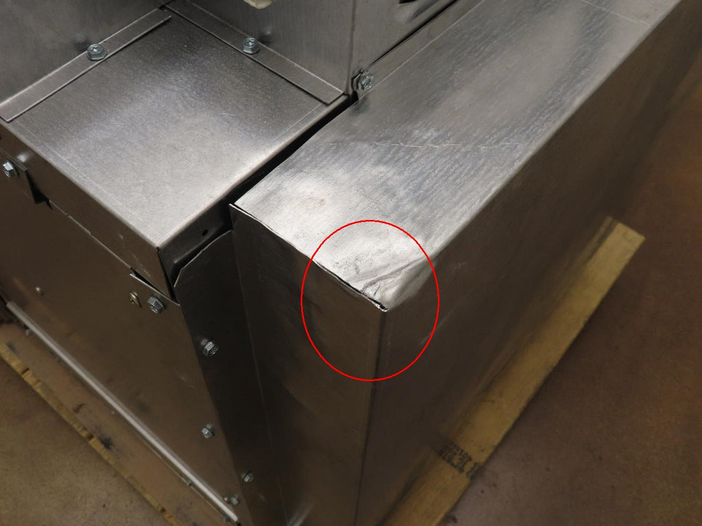 This unit is new out of box in good cosmetic condition. Some flaws are shown in the pictures: 1-SCRATCH ON THE FRONT OF THE UNIT. 2-SMALL SCRATCHES INSIDE THE DOOR. 3-BACK RIGHT SIDE OF THE UNIT IS DINGED (WILL NOT BE SEEN AFTER INSTALLATION). This unit comes with a 90 days Alsurplus warranty. Pictures are of the actual unit.