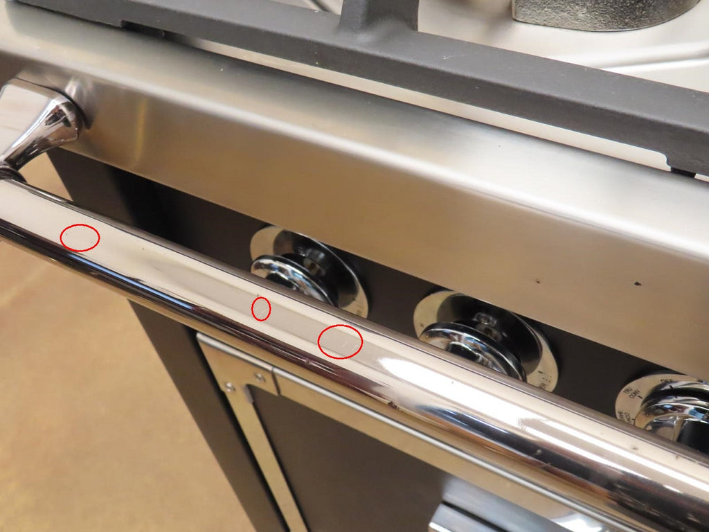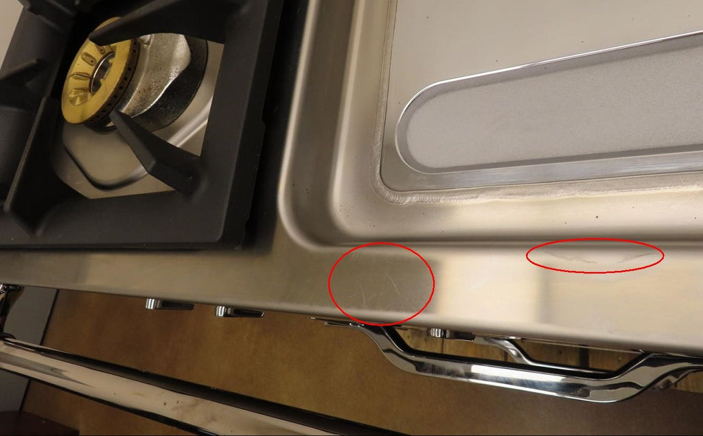4-SCRATCHES AROUND THE STAINLESS TRIMMING.