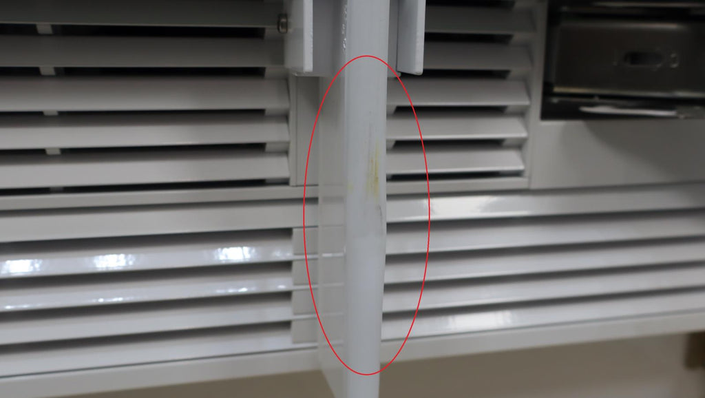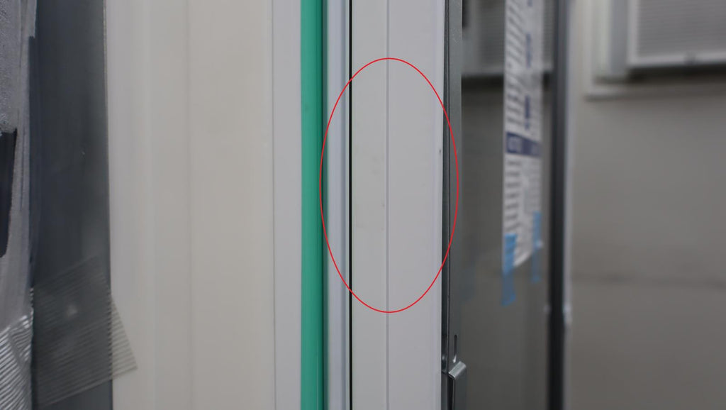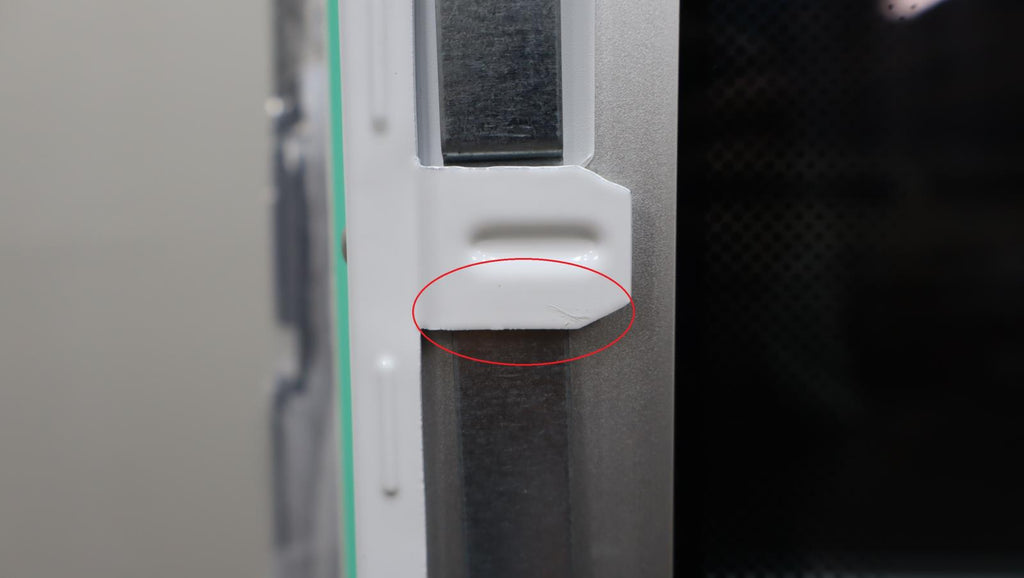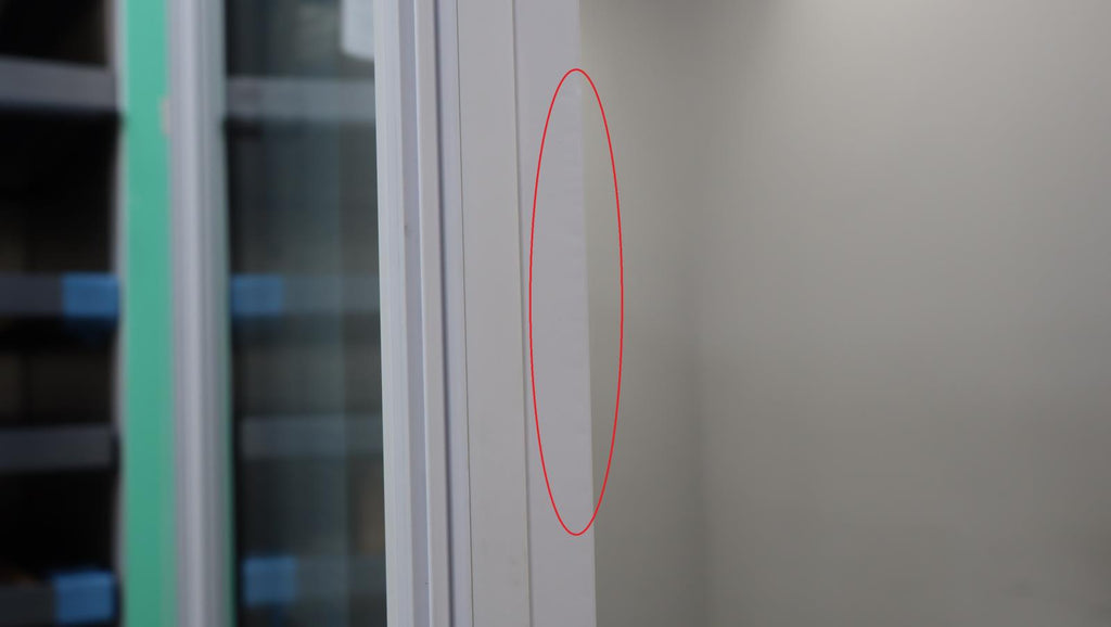4-SMALL DINGS/SCRATCHES ALONG THE WHITE TRIM OF UNIT DOOR