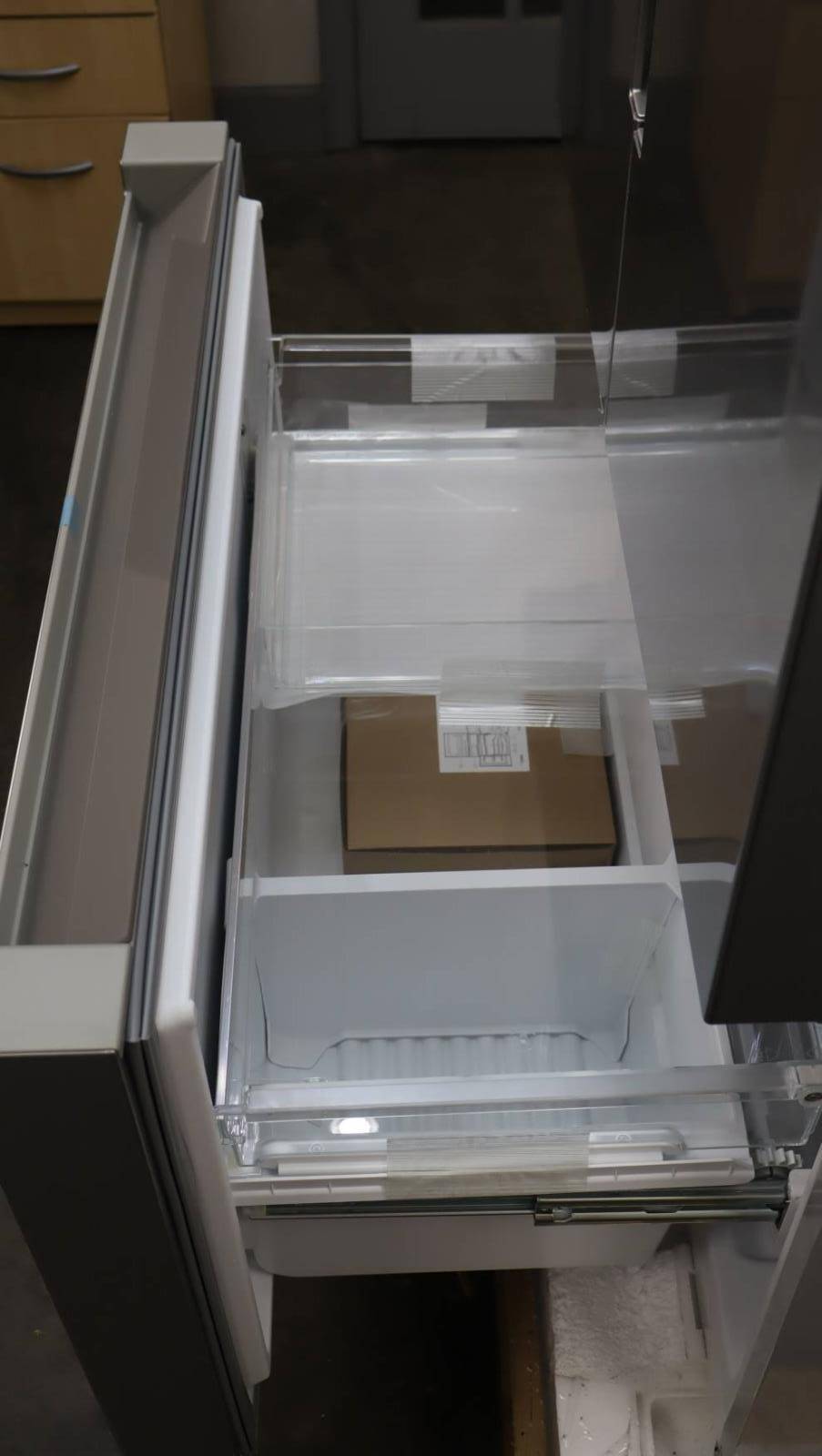 This unit is new out of box in good cosmetic condition. Some flaws are shown in the pictures: 1-SMALL SCRATCHES/SCUFFS ON THE REFRIGERATOR BINS 2-DING ON THE TOP, BACK RIGHT CORNER OF UNIT (**WILL NOT BE VISIBLE AFTER INSTALLATION**) This unit comes with full functionality manufacturer warranty. This warranty does not cover cosmetic imperfections, functionality only. Pictures are of the actual unit.