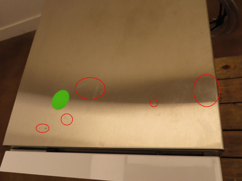 This unit is new out of the box in good cosmetic condition. Some flaws as shown in the pictures: 1-UNIT HAS SCUFFS/SCRATCHES/DINGS. 2-MINOR SCRATCHES/SCUFFS ON THE INSIDE OF THE UNIT.