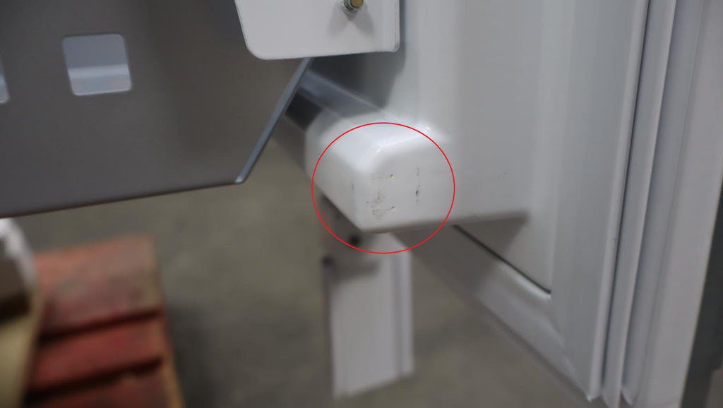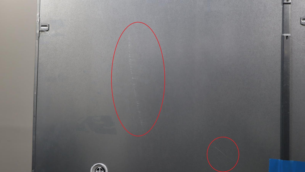 This unit is new out of box in good cosmetic condition. some flaws are shown in the pictures: 1-SCUFFS/SCRATCHES ON THE REFRIGERATOR DOOR OF UNIT 2-SMALL DING ON THE RIGHT SIDE OF UNIT 3-SMALL SCUFFS ON THE INSIDE OF FREEZER DRAWER NEAR BOTTOM LEFT CORNER This unit comes with full functionality manufacturer warranty. This warranty does not cover cosmetic imperfections, functionality only. Pictures are of the actual unit.