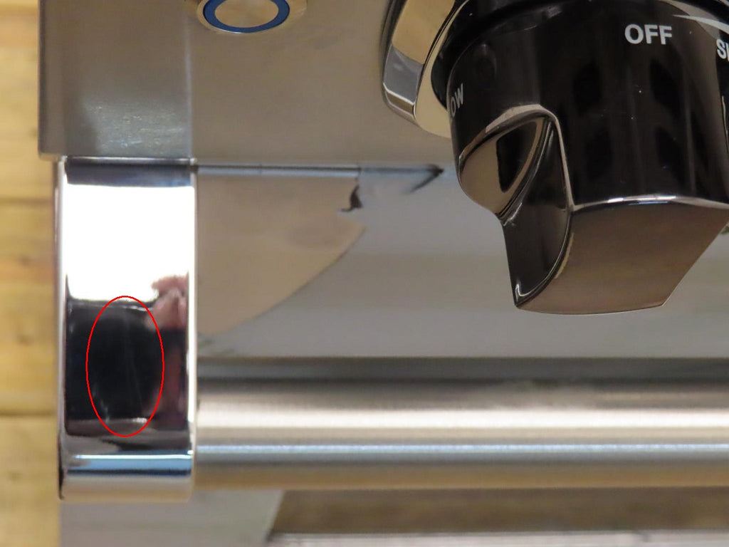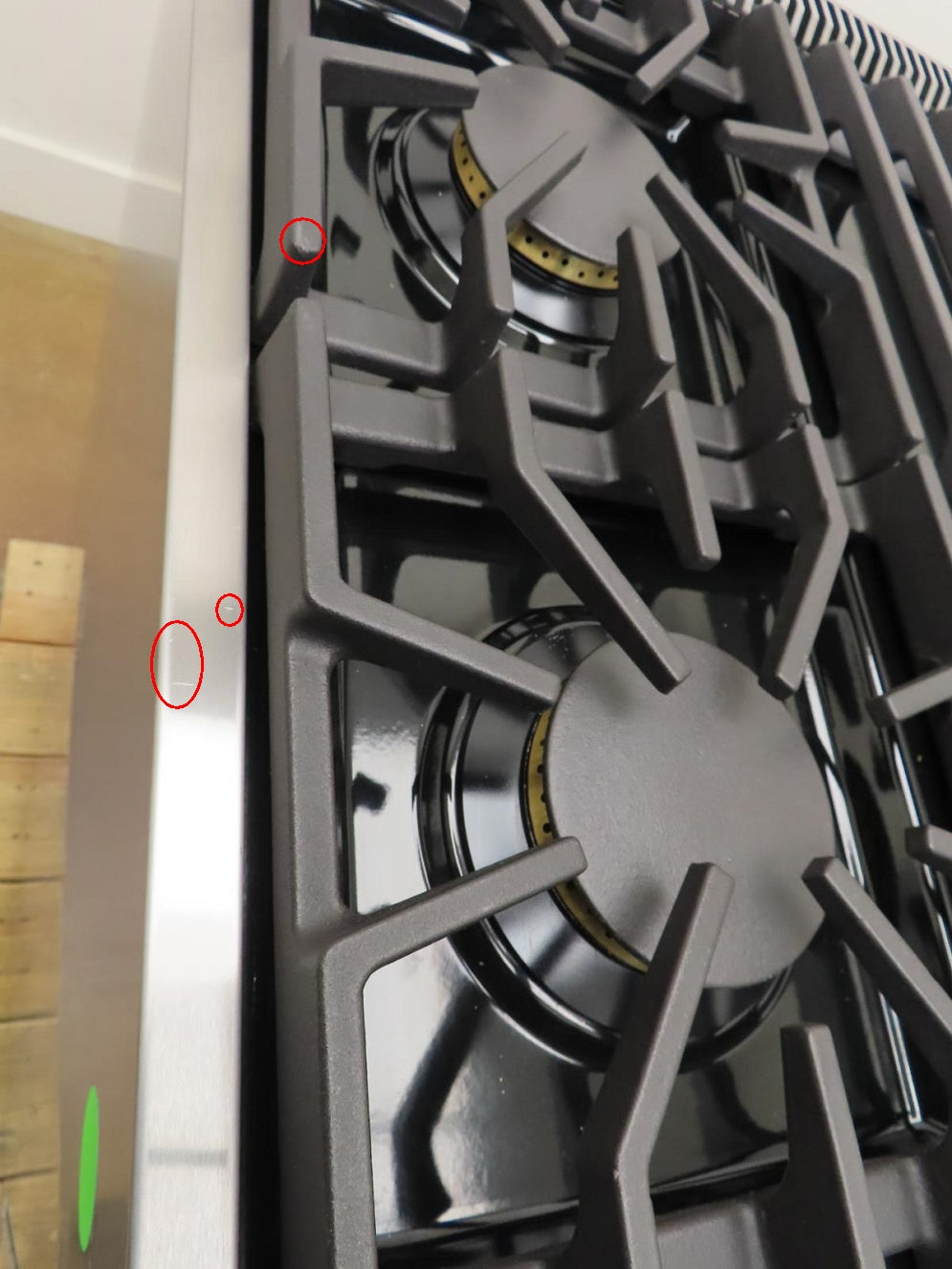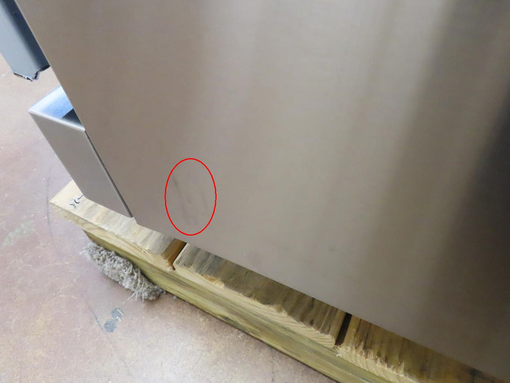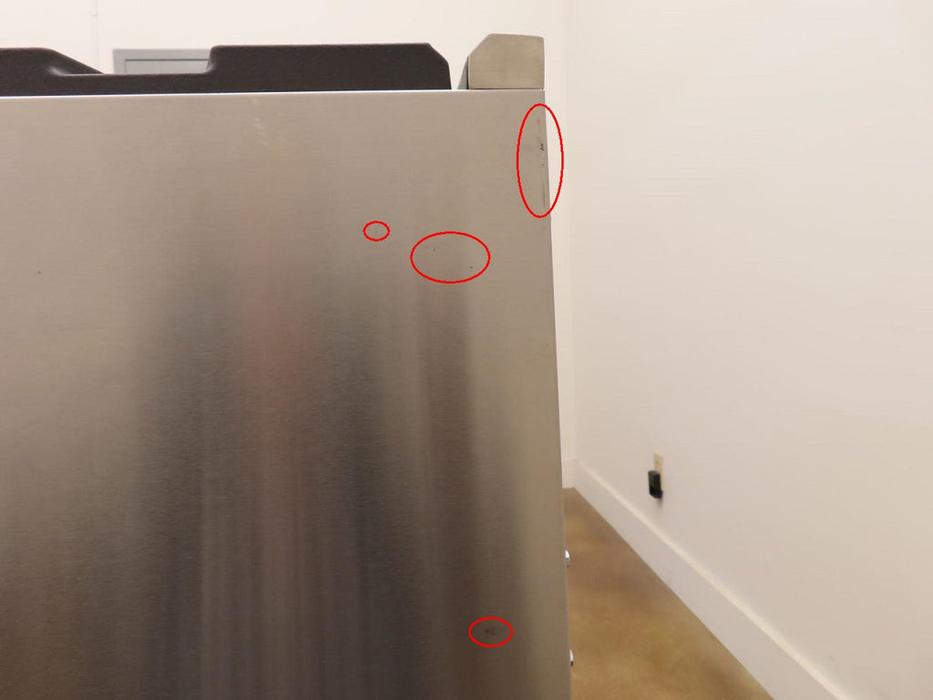This unit is new out of the box in good cosmetic condition. Some flaws are shown in the pictures: 1-SCRATCHES/SCUFFS ON THE FRONT OF UNIT/KNOBS. 2-SCRATCHES ON THE INSIDE OF THE OVEN DOOR. 3-SCRATCHES/SCUFFS ON THE STAINLESS AROUND THE COOKTOP. 4-SCRATCHES/SCUFFS/DISCOLORATIONS ON THE COOKTOP, GRATES AND BURNERS. 5-SCRATCHES/SCUFFS ON THE LEFT, RIGHT , AND BACK SIDES OF THE UNIT.